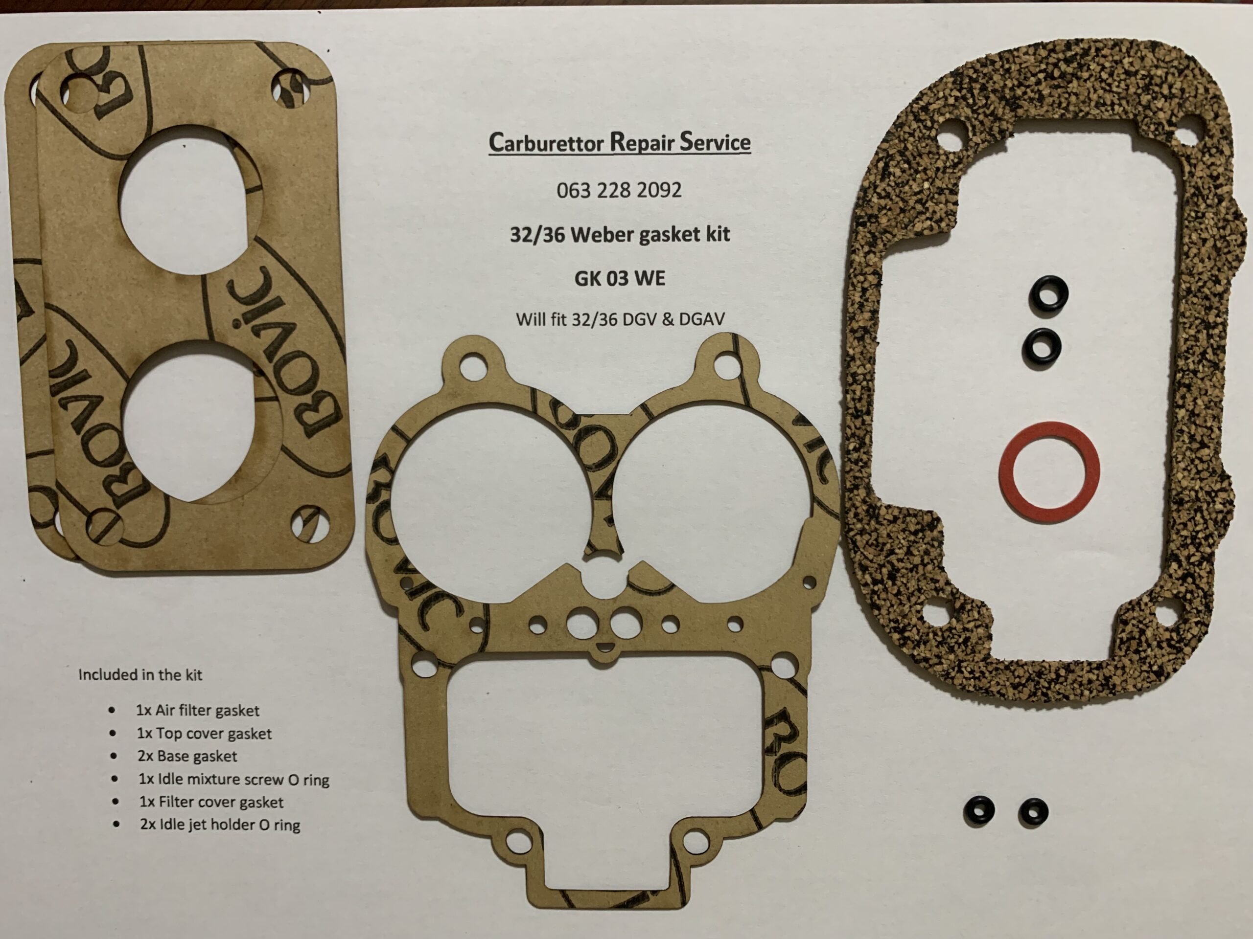 The 32/36 Weber Gasket Kit for DGV, DGAV and DGEV. For Ford and Mazda