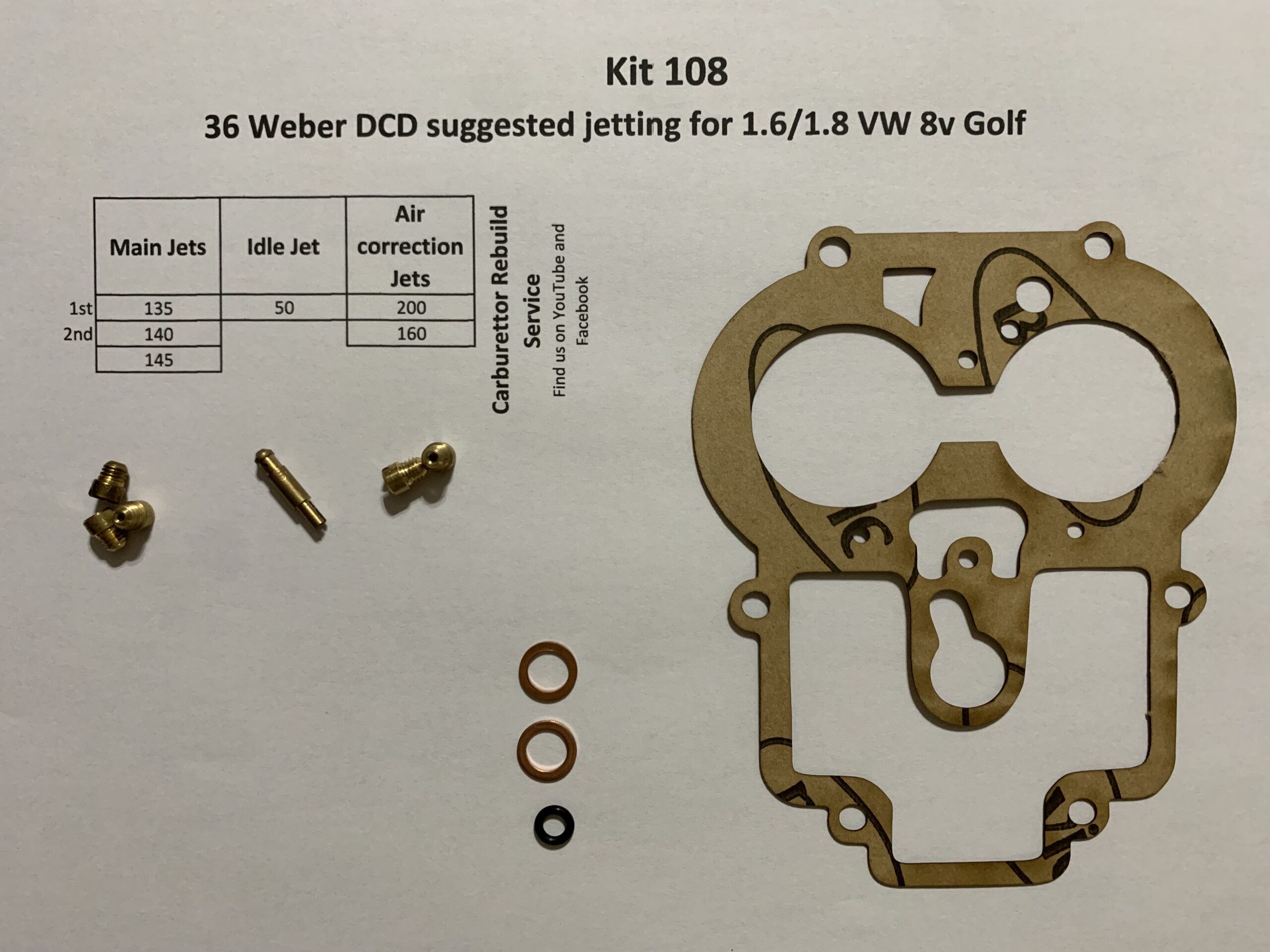 Suggested jet kit for VW Golf & Jetta 8 Valve using a Weber 36 DCD